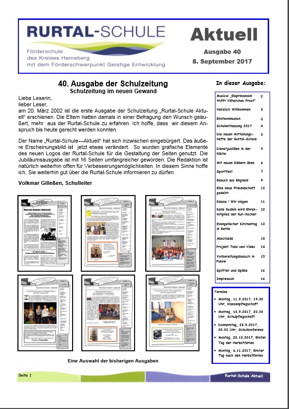 9. September 2017 597 × 843 Titel Rurtal Schule Aktuell Ausgabe 40